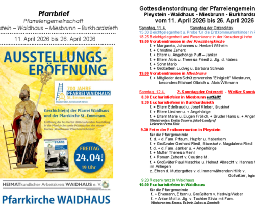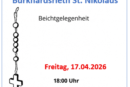 17.04.2026 - 18 Uhr - Pfarrkirche Burkhardsrieth Gebetsabend mit Otto Walter 17.04.2026 - 18 Uhr - Pfarrkirche Burkhardsrieth Am Freitag, 17.