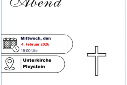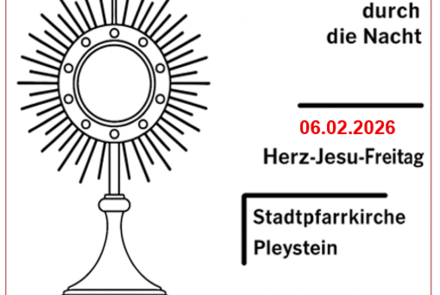 Am Freitag, 6. Februar findet von 20.15 bis 7.30 Uhr in der Pfarrkirche Pleystein wieder das Gebet durch die Nacht statt. Dazu möchten wir alle Gläubigen herzlich einladen! Listen zum Eintragen liegen in der Kirche aus.