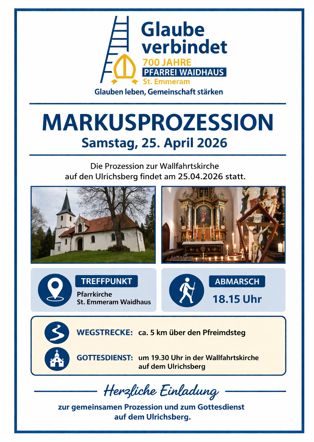 Am Samstag, den 25. April 2026, findet die Markusprozession zur Wallfahrtskirche St. Ulrich statt.